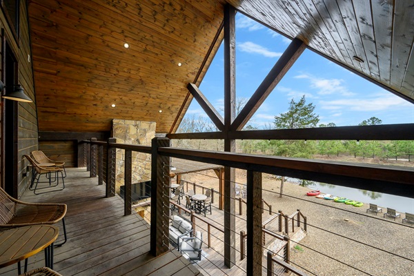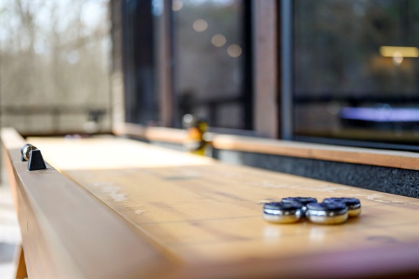 Take the fun outdoors with a friendly round of shuffleboard on the covered deck—fresh air, forest views, and a little friendly competition make the perfect combo.