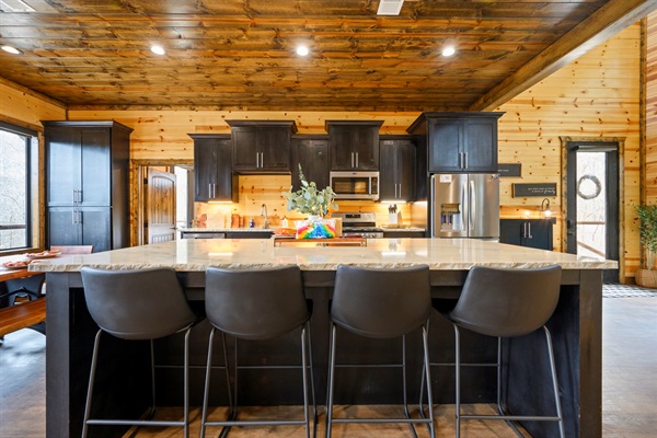 A modern kitchen that blends luxury finishes with the warmth of a cabin retreat.